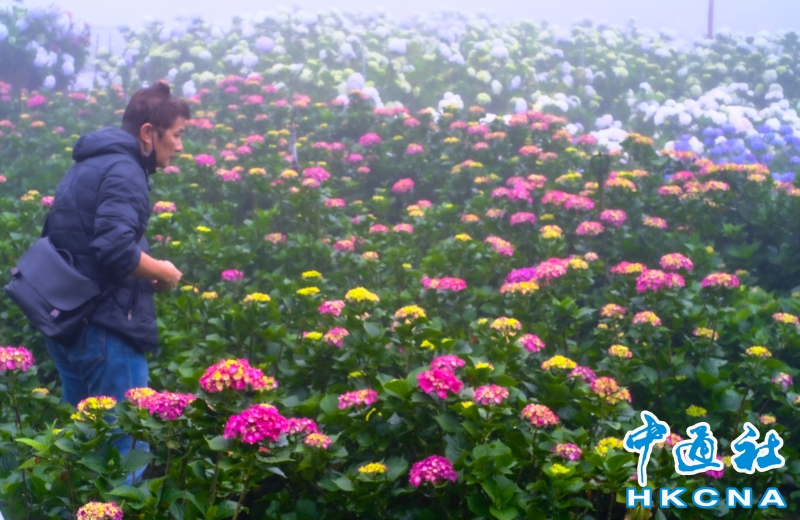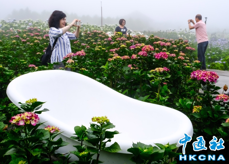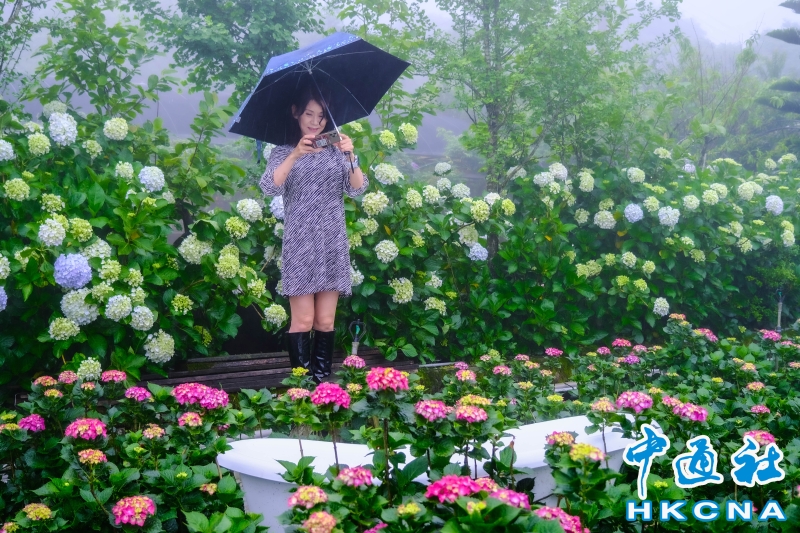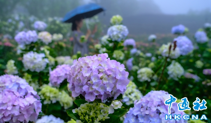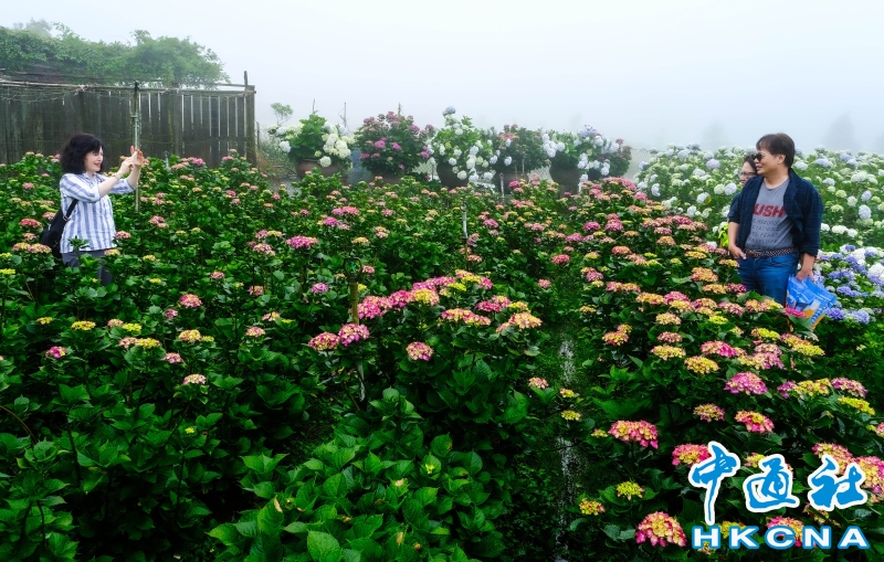 台北市陽明山竹子湖“2023竹子湖繡球花季”5月20日開展,展期至6月18日。這裡農園眾多,所種植的繡球花品種不一,顏色深具變化,不論是純白色、粉色滾紅邊、粉紅色、紫紅色或是藍色等色系應有盡有,色彩層次濃豔豐富,花季來臨特別吸引民眾前往觀賞。一欉欉的繡球花田開滿竹子湖畔,目前正值梅雨季節,賞花時宛如有雲霧繚繞的意境,花農表示,這是季節獨有的芬圍特色,由於海竽即將退場,因此五月可將海芋、繡球花都盡收眼底,遠離塵囂、放鬆心情,享受大自然充滿詩情畫意的禪意洗禮。 香港中通社圖片