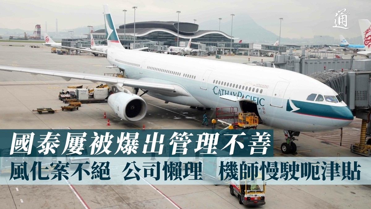 國泰問題多多!風化案不絕公司懶理 機師慢駛呃津貼香港新聞網5月24日電 國泰航空近日因為一條毛毯,引起連串風波,更揭露品牌背後存在嚴重的管理問題!國泰航空過去屢被爆出管理不善,連商務及經濟發展局前局長馬時亨亦曾經公開表示,國泰的管理一直以來均存有問題,應進行檢討及改善。