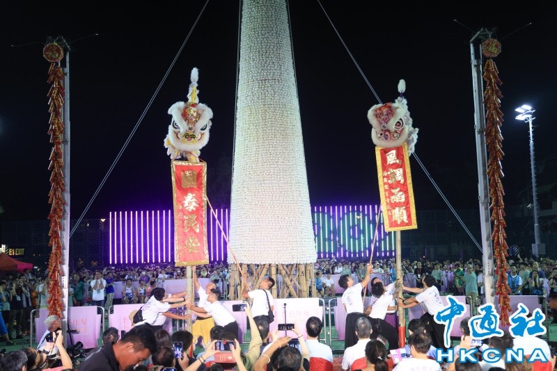 搶包山復辦 搶回一段香港長洲舊時光香港中通社5月27日電(香港中通社記者陳卓儀 張明臻)因新冠疫情闊別三年的長洲太平清醮壓軸項目搶包山比賽,27日淩晨登場。新一屆“包山王”,“包山後”出爐,島上居民開始領取“平安包”,祈求平安。這項攀爬活動吸引1300多名市民進場觀看,感受久違的熱鬧。 早在太平清醮前,“平安包”就成為5月份長洲島的吉祥物。出了碼頭,走進兩側的陳街舊巷,立刻會見到熱騰騰的包子,印著“平安”二字;飾品店、飲料店、茶葉店,都把產品包裝成包山的模樣。 搶包山次日,居民排隊領取平安包。吃了已祈福的平安包,身體健康、平平安安。 “無論是太平清醮還是平安包,對每個長洲人都很重要。儘管太平清醮有很多元素,但主要想體現的都是平安二字。” 郭錦記包子鋪已在長洲開店50多年,向來生意十分暢旺。老闆郭宇鈿對香港中通社記者說,太平清醮巔峰期會售賣6萬只包子,4月初就開始為節慶準備,近日每天幾乎都通宵做包子。 他介紹,最傳統的是麻蓉餡包子,因這個民俗開始時人們生活條件都不富裕,用最廉價的材料,芝麻、砂糖等,久而久之形成傳統。後來就有蓮蓉、豆沙、綠茶等餡料。不過和其他麵包的製作不同,由於節慶期間要齋戒,因此不用豬油或牛油;包子還會印上“平安”的印章。