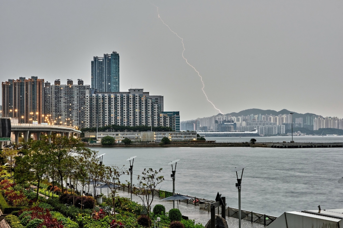 香港新聞網6月2日電 受廣東內陸南移的強雷雨區影響,香港昨早(1日)有大驟雨及強烈狂風雷暴。短短6小時內,香港境內共錄得超過3.6萬次閃電,當中包括12367次雲對地閃電,為近18年來單日閃電次數第四多,僅較第一位少約2000次。 根據天文台閃電位置資訊服務資料顯示,由昨天凌晨3時至早上9時,香港境內共錄得12367次雲對地閃電,及23886次雲間閃電。最為密集時段為當天早上6時至7時, 單單一小時已錄得14504次閃電。當中,新界東錄得雲對地閃電次數最多,共5783次、其次為新界西,共錄得2706次、而大嶼山錄得2397次,港島及九龍則共錄得1481次。