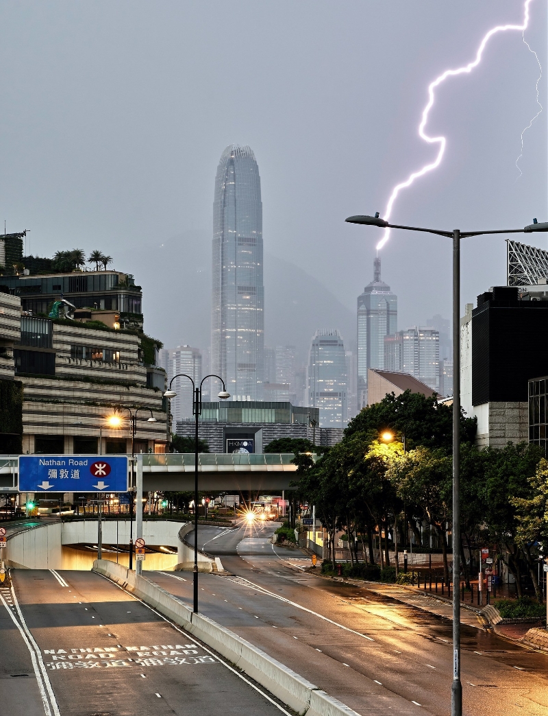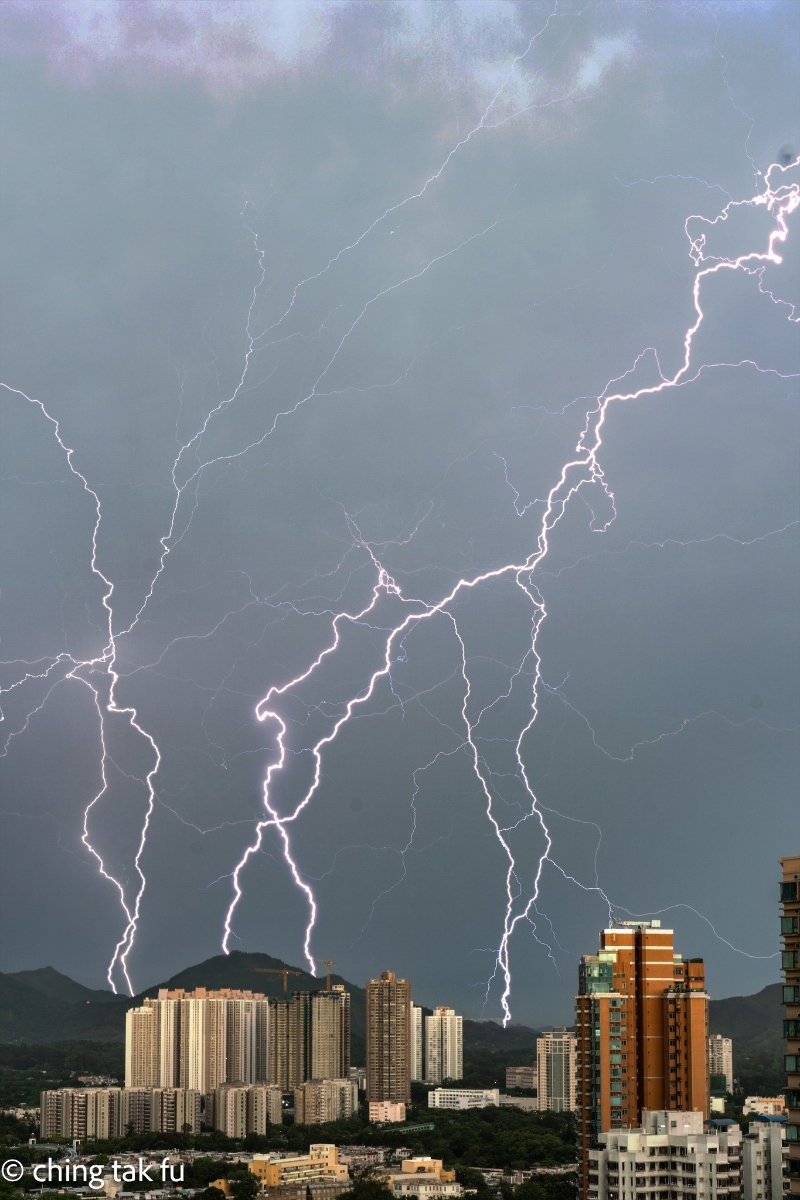社區天氣觀測計劃 CWOS FB圖片, 網友Carlo CK Yuen攝。 不少攝影愛好者捕捉到閃電劃破夜空一刻,並上傳社交平台與網友分享。其中一張照片更可見,閃電穿過透厚厚的烏雲,直擊中環中心頂部的避雷針。 天文台署理高級科學主任林學賢接受傳媒訪問時表示,今次是自2005年天文台閃電定位系統運作後,單日閃電次數排第四多。排首位的是2010年曾出現14000次雲對地閃電,另外2020年6月分別錄得約14,000次及13,000次雲對地閃電,排第二和第三位。