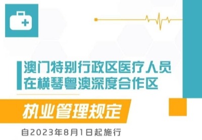 香港新聞網6月3日電 珠海市人大常委會、橫琴粵澳深度合作區執委會公佈《澳門特別行政區醫療人員在橫琴粵澳深度合作區執業管理規定》、《澳門特別行政區藥學技術人員在橫琴粵澳深度合作區藥品零售單位執業備案管理規定》兩部法規,更加靈活、開放的探索對澳醫療合作,法規將於2023年8月1日起施行。