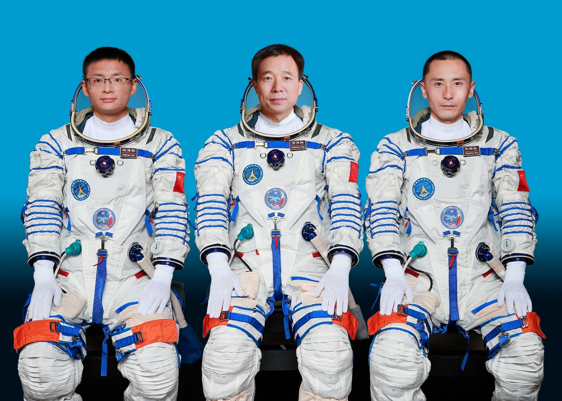 經空間站應用與發展階段飛行任務總指揮部研究決定,神舟十六號航天員乘組由指令長景海鵬、航天飛行工程師朱楊柱、載荷專家桂海潮3名航天員組成。圖為神舟十六號航天員景海鵬(中)、朱楊柱(右)、桂海潮。香港中通社圖片