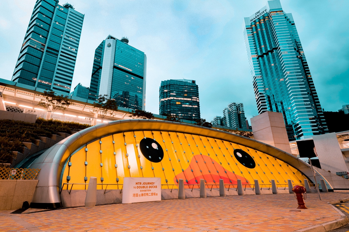 6月1日,主辦單位公佈,大型海上公共藝術展覽《橡皮鴨二重暢》6月10日起開放予公眾,橡皮鴨將首度偕同伴雙雙暢遊維多利亞港,預計為期約兩星期。為讓藝術更接近生活,其中18款橡皮鴨造型散佈在18個港鐵車站,金鐘站即日起更成為期間限定“橡皮鴨主題車站”。香港中通社圖片