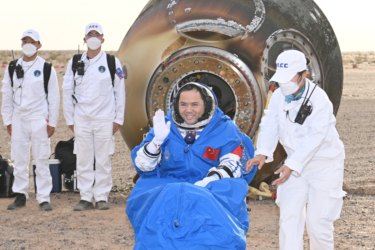 6月4日,神舟十五號載人飛船返回艙在東風著陸場成功著陸,現場醫監醫保人員確認航天員費俊龍、鄧清明、張陸身體狀態良好,神舟十五號載人飛行任務取得圓滿成功。圖為航天員張陸安全順利出艙。香港中通社圖片