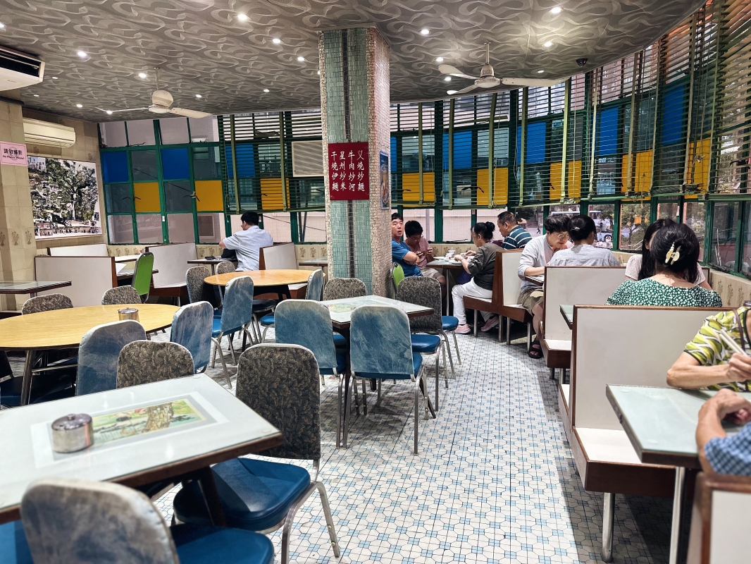 香港新聞網6月9日電(記者 曹文毓) 美都餐室是香港一間雙層型的舊式街角茶餐廳,位於香港九龍的油麻地廟街,曾是多部電影和和電視劇的取景地,包括《九龍冰室》、《廟街·媽·兄弟》、《酒店風雲》和《PTU》等。 美都餐室在1950年開業,一直保留六七十年代舊冰室設計,彩色玻璃窗、馬賽克瓷磚、吊扇等懷舊感十足。餐廳到2022年3月因冠病疫情停業,到5月中一度恢複經營,但最後到7月宣佈結業,同年10月再恢复营业。 二樓的雅座飽覽對面的榕樹,昏陽的光線折射進店內,讓食客重拾電影裏的時光。