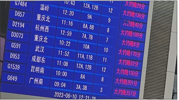 香港新聞網6月10日電 6月10日,江蘇、安徽等地多列開往合肥方向的高鐵列車出現晚點,從幾分鐘到三四個小時,據中國鐵路合肥站官方消息,滬蓉線長安集至南分路間突發不明水源水淹道床,影響列車運行。 內地多家媒體報道,6月10日,江蘇、安徽等地多列開往合肥方向的高鐵列車出現晚點。晚點時間不等,從幾分鐘到三四個小時都有,G649次甚至達到了257分鐘,也就是幾乎4個半小時。