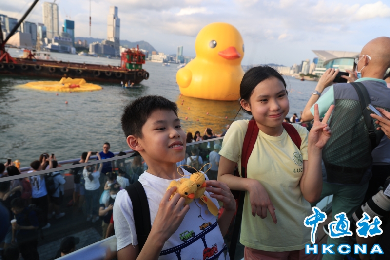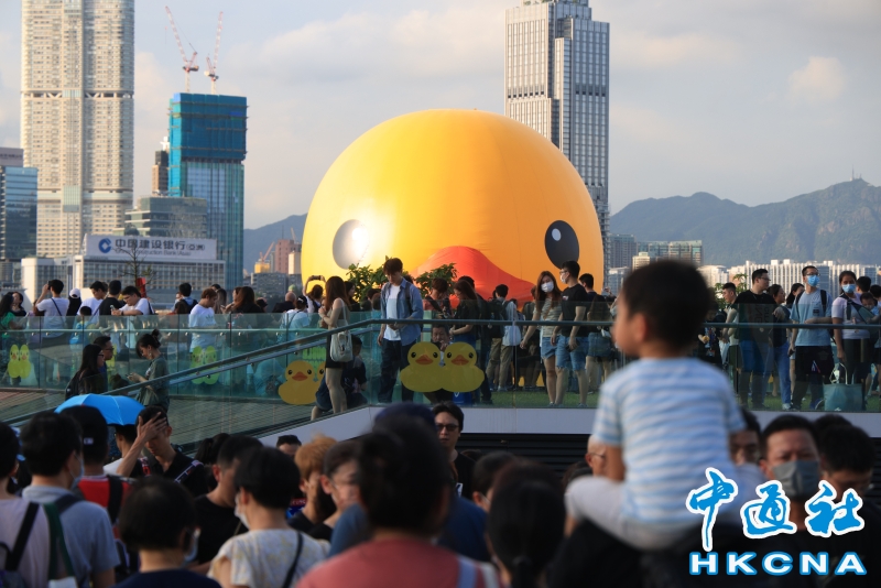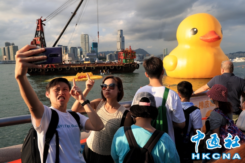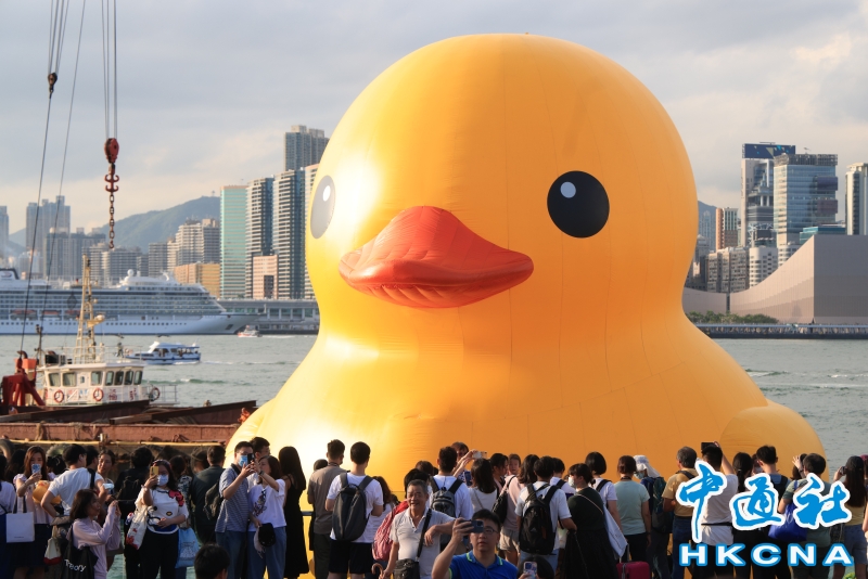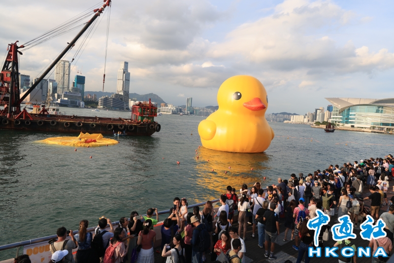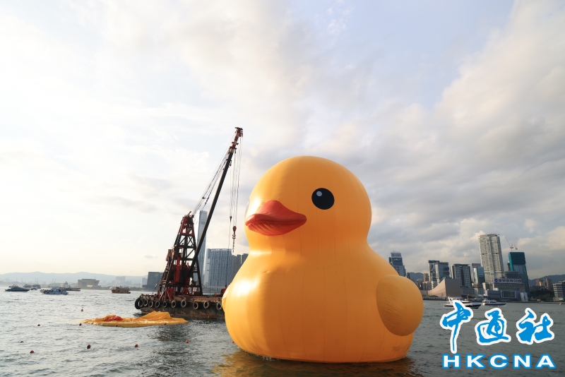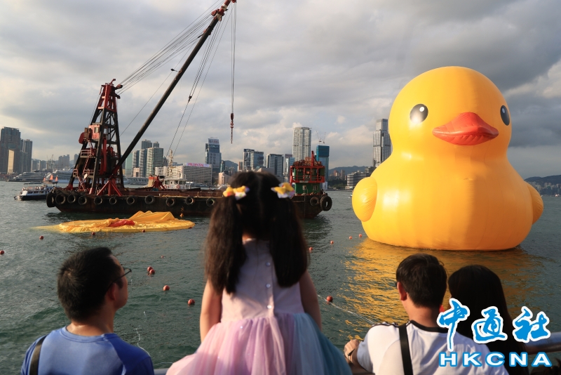 巨型“雙鴨”游香港維港首日一隻“黃鴨”漏氣分享到: