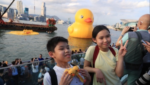 此次橡皮鴨快閃天壇大佛活動由昂坪360義工隊發起,與社福機構鄰舍輔導會的義工們,近50名義工共同完成,傳遞橡皮鴨友愛大同的正面訊息予社會各界。義工們合力將近五千隻橡皮鴨排列在全球最高的戶外青銅坐佛天壇大佛下的268級石階,與大佛合照,場面壯觀! 橡皮鴨亦將登陸昂坪市集,準備在6月13日至9月3日舉辦的《橡皮鴨二重暢》遊昂坪360活動與公眾見面。市民和旅客亦可於6月12日起,於昂坪市集“香港有愛”商店以50元購買首批1,000隻昂坪360獨家發售的橡皮鴨,收益將全數捐予鄰舍輔導會。每人限買一隻,先到先得,售完即止。 而活動結束後,昂坪360會檢查所有曾經展出的橡皮鴨,並為狀態良好的橡皮鴨清潔,再安排轉送鄰舍輔導會的受惠人士或再用作義賣用途。 (完) 【編輯:徐嘉儀】