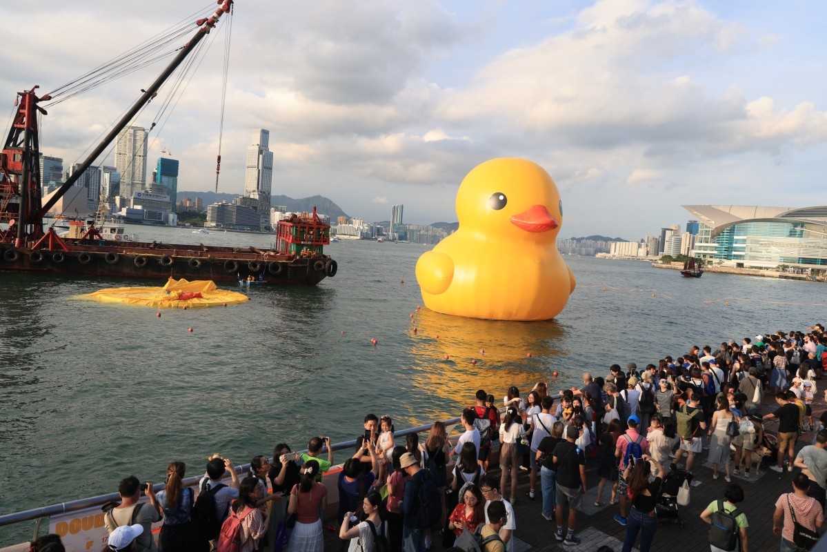 香港新聞網6月12日電 受炎熱天氣影響要放氣避免風險的巨型黃色橡皮鴨一度重新充氣,已經完成檢查。主辦方表示,黃色橡皮鴨將再次在維港海面展出。 主辦方在社交平台表示,橡皮鴨被送到青衣船廠後,工作團隊連夜冒雨檢查,並特別因應近日特殊天氣,為橡皮鴨進行反覆測試,黃色橡皮鴨將再次在維港海面展出。 主辦方指,大型戶外充氣藝術裝置,需要面對不同天氣及突如其來的外在環境挑戰,而作出相應的應變方案。根據天文台預測,未來數日天氣仍不穩定,但強調會盡最大努力守護橡皮鴨,希望社會大眾一起集氣支持,為橡皮鴨及團隊打氣。