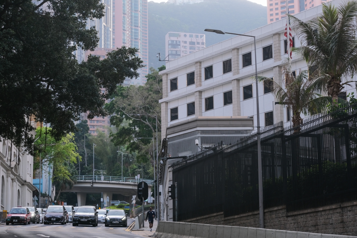 事發在清晨5時許,警方接獲美國駐港澳總領事館職員報案,指外牆及大閘被人以噴漆噴上字句。現場所見,領事館外牆被噴上“雙標”及英文“Hegemony(霸權主義)”字樣。有保安員一度以黑色膠布遮蓋。