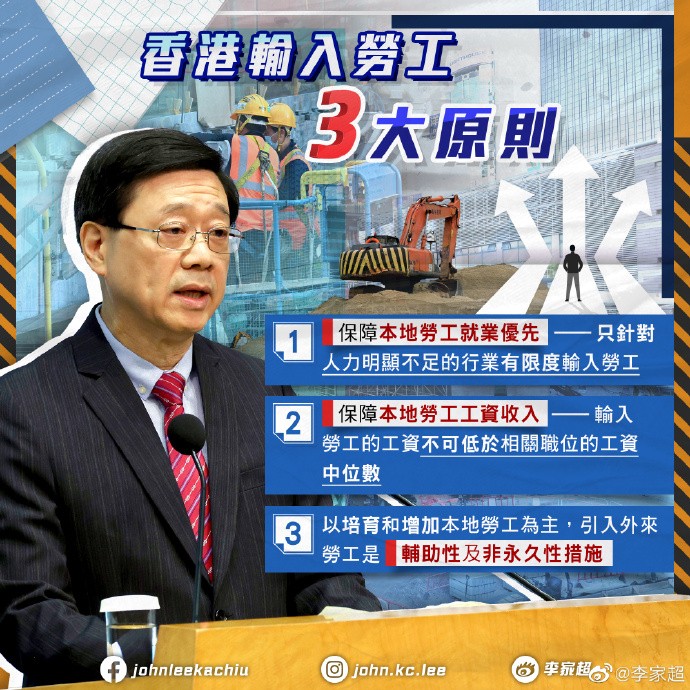 李家超:本港輸入勞工三大原則分享到: