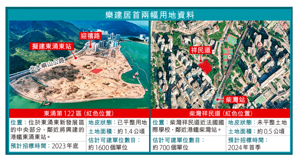 樂建居計劃兩幅用地資料。圖源:信報 “樂建居”計劃率先於今年底招標的東涌122區土地屬於海旁一帶的發展區,1.4公頃用地已平整,提供1600個單位。 明年初推出的市區用地位於柴灣祥民道,鄰近港鐵柴灣站,附近有不少工廠大廈,面積相對較小,只有0.5公頃,可建700個單位。發展商可投標官地或申請改劃私人地興建資助出售單位,以3折補地價。 單位數量設下限,實用面積不可小於280平方呎,7成單位要大於約375呎,以市價65折出售,符合申請居屋資格的市民均可申請,當局預計最快2028至29年度落成。 根據計劃,發展商須在指定時限一次過售出所有單位,政府不會回購未售出的單位。如單位未能售出,發展商可向政府補回地價。政府又指,假如發展商的建屋時間超出申請時所訂明的,會有罰則。 恒基兆業表示對任何可紓緩房屋問題的方案持開放和正面態度;而新世界則指集團早在2021年已成立社企,倡議發展私人資助房屋項目,將積極研究參與政府的“樂建居”計劃。(完) 【編輯:王軼南】