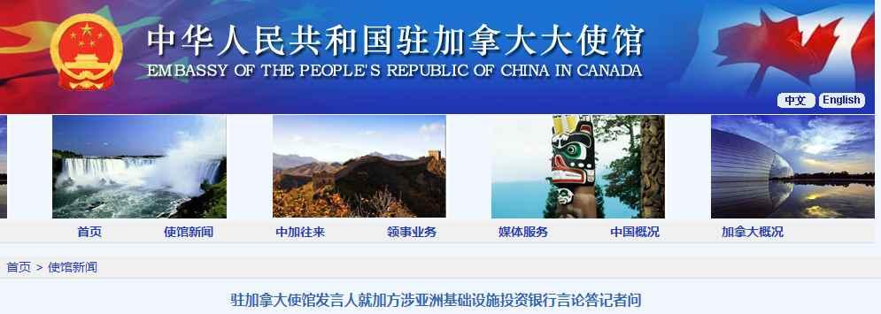 中國駐加使館網站截圖 發言人介紹,亞投行是國際多邊開發體系的重要成員,目前共有包括中國、加拿大在內的106個成員。亞投行的宗旨是通過在基礎設施及其他生產性領域的投資,促進亞洲經濟可持續發展、創造財富並改善基礎設施互聯互通,與其他多邊和雙邊開發機構緊密合作,推進區域合作和夥伴關係,應對發展挑戰。中國是亞投行的重要成員,一貫遵循多邊規則和程序,通過理事會、董事會等多邊治理機制參與決策。 發言人強調,大量事實表明,中國是維護世界和平、促進共同發展、應對全球性挑戰的積極貢獻者。世界面臨的真正風險是搞陣營對抗、“新冷戰”;是肆意干涉別國內政,製造地區動蕩混亂;是將經貿問題政治化,破壞全球產供鏈穩定;是對外轉嫁經濟金融風險,周期性收割世界財富。 中國外交部發言人汪文斌北京時間15日指出,亞投行成立7年多來,在機構建設、戰略政策、投資業務等方面取得一系列重要成績,得到國際社會廣泛認可。據了解,亞投行在職員招聘和管理當中堅持公開、擇優、透明原則,職員來自65個國家和經濟體,其僱主口碑得到普遍肯定。(完) 【編輯:凌玉辉】