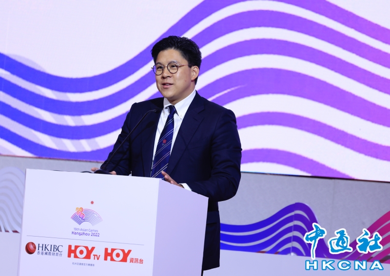 •   香港有線寬頻通訊公司連續七屆成為“亞洲運動會”香港地區獨家官方轉播商。26日有線寬頻舉行啟動禮,宣佈三個免費電視頻道將全力轉播亞運賽事。“杭州第19屆亞運會”香港代表團團長霍啟剛出席啟動禮並致辭。(香港中通社記者 曹文毓攝) 香港中通社圖片