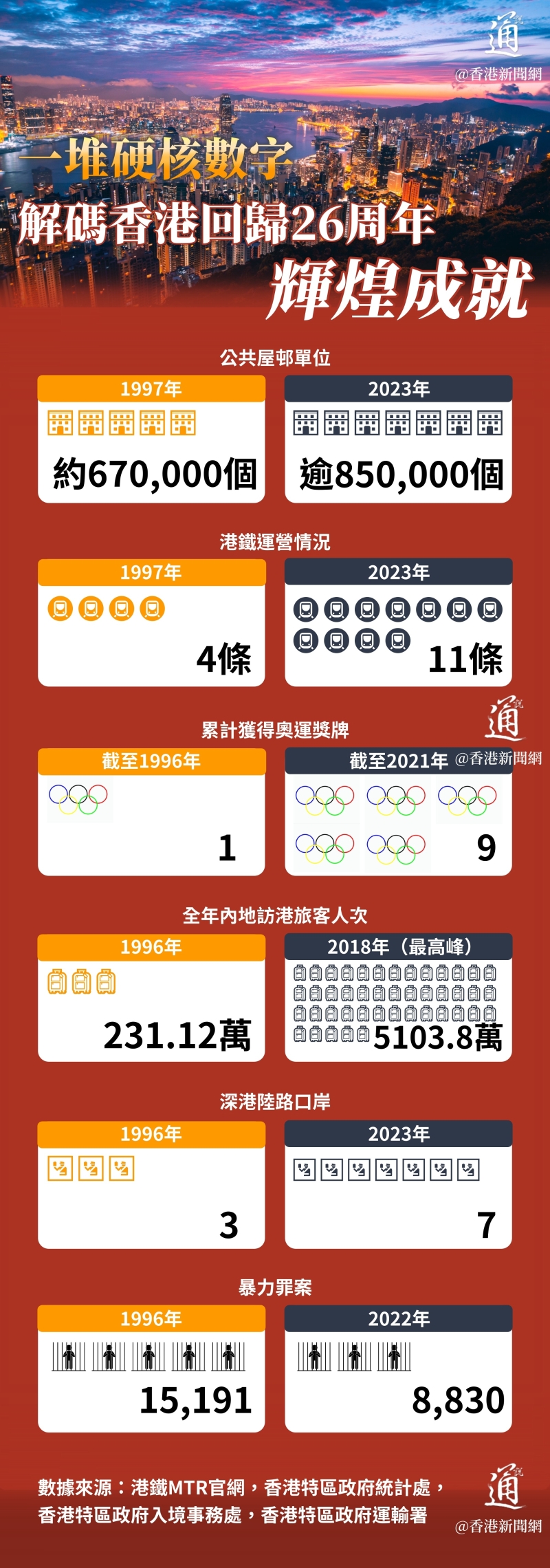 慶回歸|一堆硬核數字 解碼香港回歸26周年輝煌成就分享到: