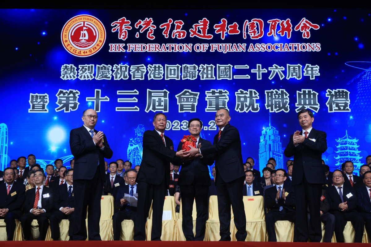 香港新聞網6月28日電 6月27日晚,香港福建社團聯會舉行慶祝香港回歸祖國26周年暨第十三屆會董就職典禮,施清流就職新一任主席。特區行政長官李家超出席活動致辭,希望閩港共同貢獻國家高質量發展。
