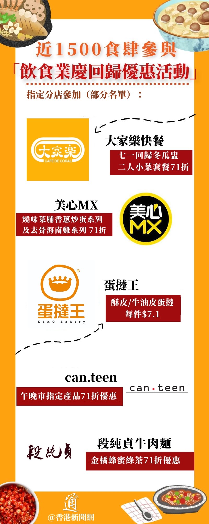 慶回歸|戳圖看哪1500間食肆推7.1優惠分享到:
