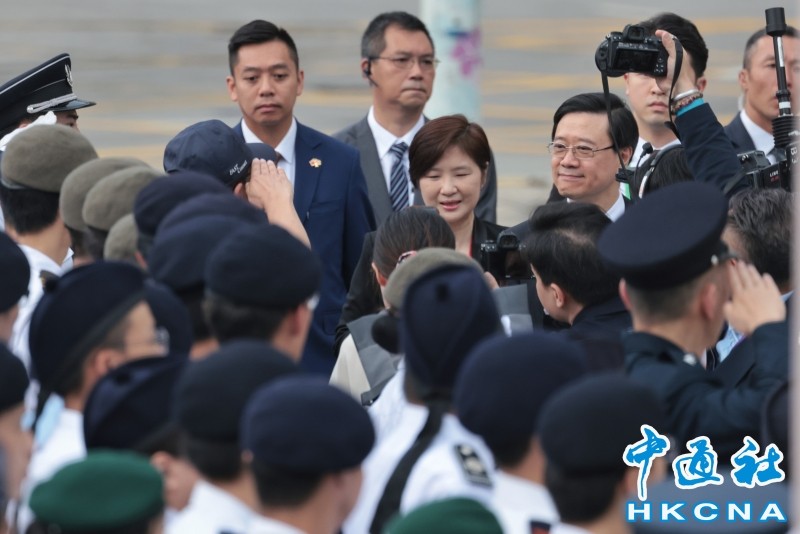 香港新聞網7月1日電 今日(7月1日)是香港回歸祖國26周年紀念日,上午8時,灣仔金紫荊廣場舉行了升旗儀式。升旗禮前,香港特區行政長官李家超逐一向在現場的各個青年制服團體問好,他説“大家好,做得好,繼續努力”,展現香港特區對青少年的關心關愛。