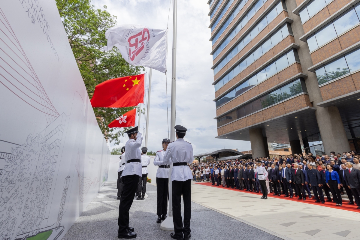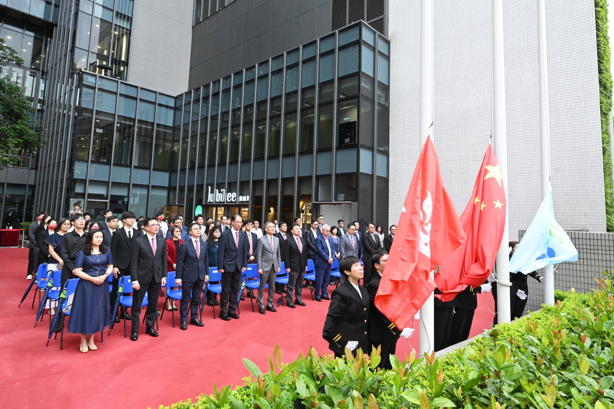 圖片來源:都會大學。 當天早上,香港都會大學於賽馬會校園舉行升旗儀式。都大校董會成員,聯同大學管理層、教職員及學生出席儀式,同心祝願香港繼續繁榮進步。 香港理工大學(理大)今天早上於校園舉行升旗儀式,慶祝香港特別行政區成立26周年。理大校董會主席林大輝、校長滕錦光、校董會副主席李國祥、大學顧問委員會主席顏吳餘英、榮休校長潘宗光、大學顧問委員會名譽主席鍾志平,聯同理大校董會成員、大學顧問委員會成員、管理層、大學院士、嘉賓,以及近600名師生及校友一同參與儀式,祝願國家富強昌盛,香港繁榮穩定。
