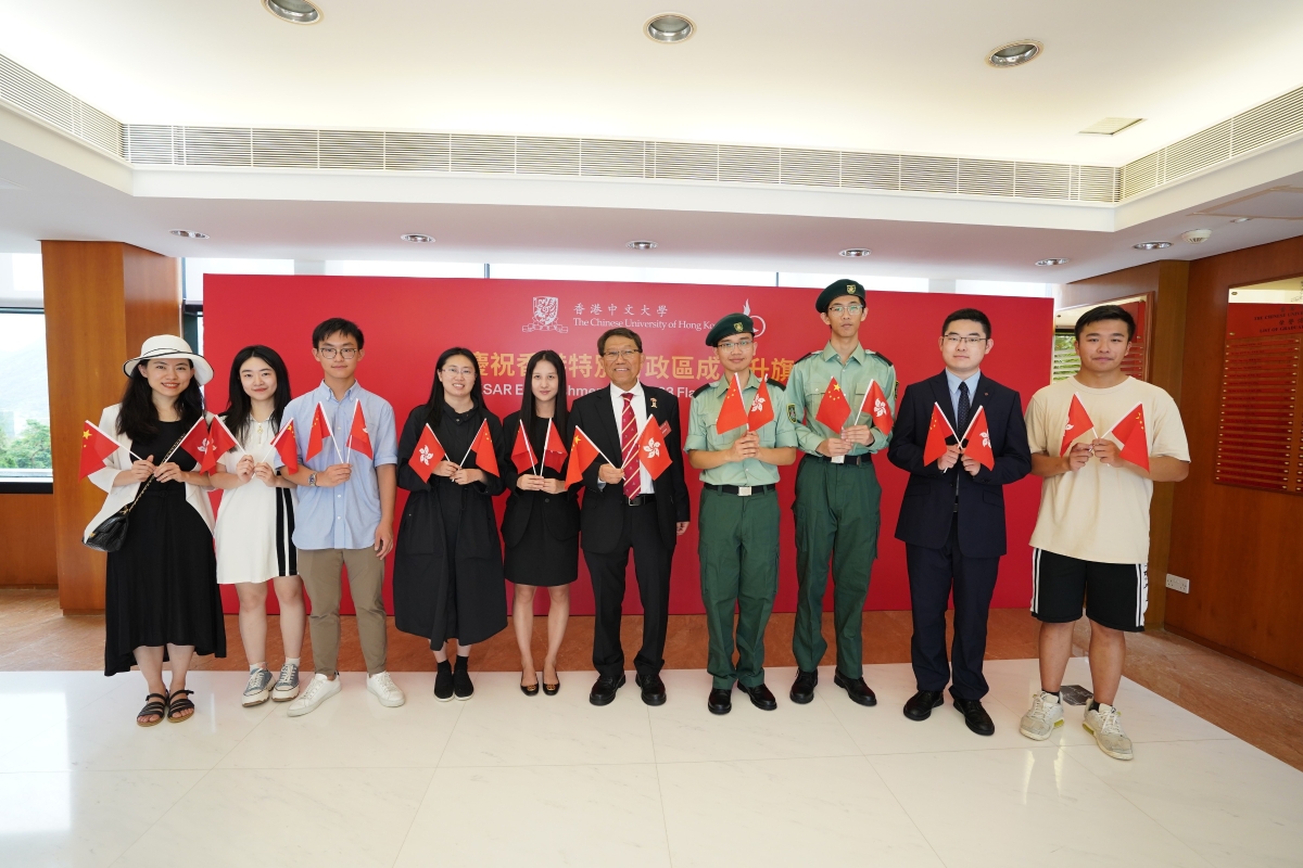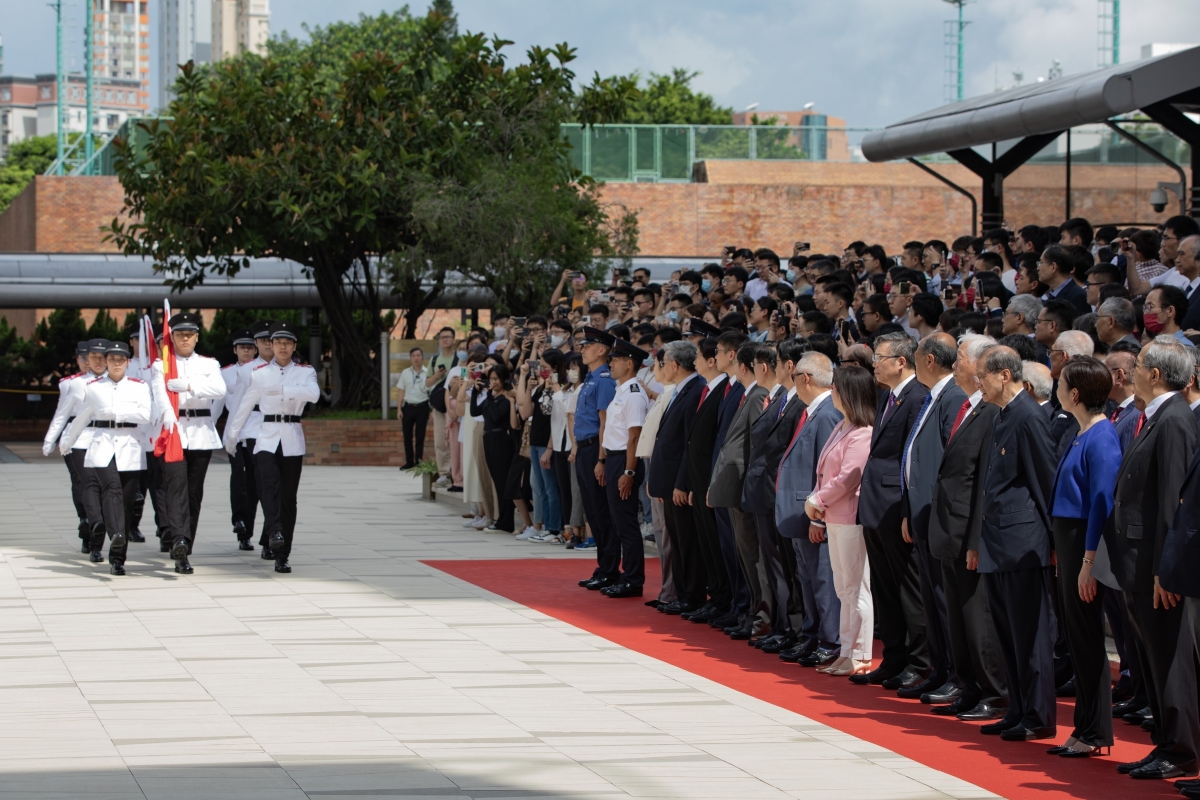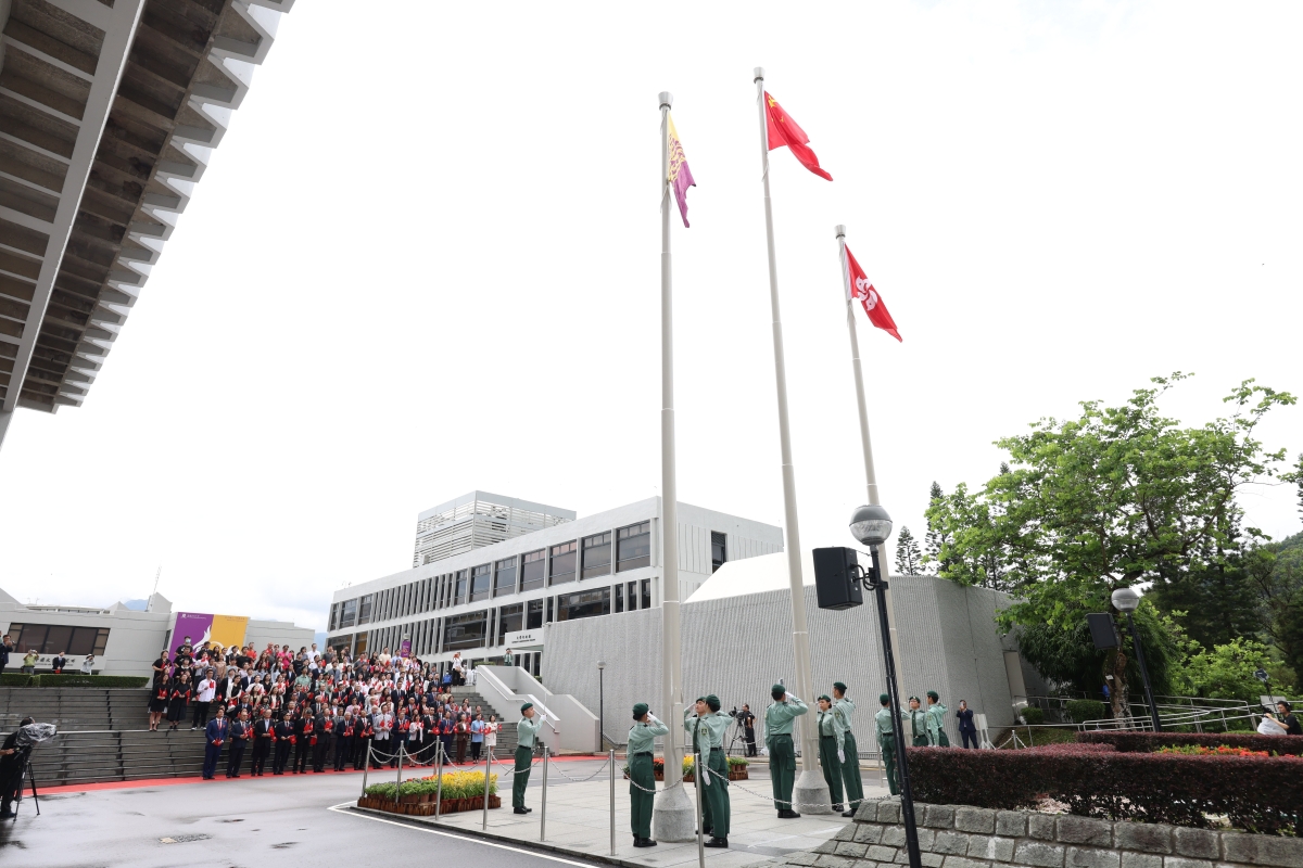 圖片來源:理工大學 上午10時30分,香港中文大學舉行升旗儀式,國旗、香港特區區旗及中大校旗在國歌奏唱中升起。