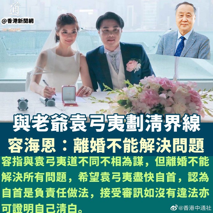 香港新聞網7月4日電 香港警方國家安全處(國安處)昨天(3日)表示,早前已向法庭申請拘捕令,通緝8名反中亂港人士,並每人懸紅100萬元(港幣,下同),當中包括新民黨立法會議員容海恩的老爺袁弓夷。容海恩早於去年八月已宣布與對方斷絕“爺媳關係”,但她今日(4日)指為丈夫袁彌昌感擔心,指其夫不在港,昨日兩人有通電話,稱袁彌昌收到不少電話,感到有壓力。她指與袁弓夷劃清界線是為保護家人,又指離婚不能解決問題。 繼昨天發聲明支持警方國安處執法後,她今早再接受電台訪問,被問及見面會否擔心與袁弓夷共同居住會否構成窩藏時,本身是大律師的容海恩指出新科技下都有很多見面的方法,並指如兩個女兒問及,她會講述袁弓夷事件的進展,指袁弓夷是兩女的爺爺是不爭事實,並指自己與袁弓夷釐清關係,是保護包括袁彌昌等家人。