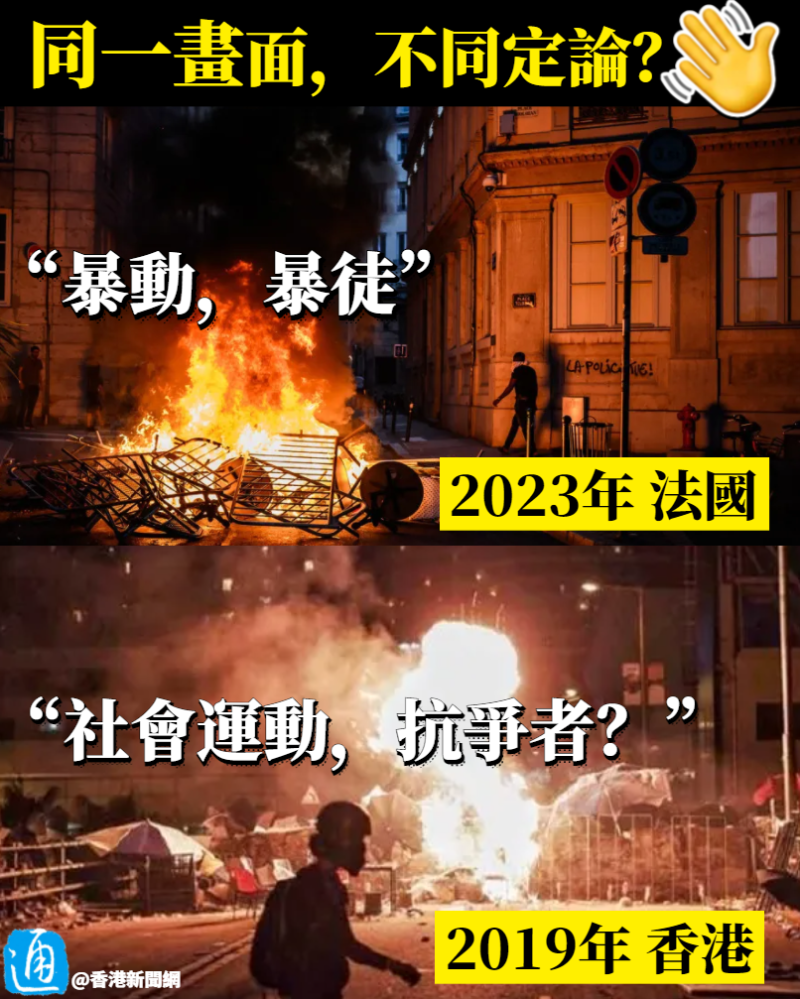 奇怪的是,同樣的事情發生在法國,就是暴動,參與者即為暴徒;而發生在香港,就被美英稱之為“社會事件”,暴徒更被美化為“抗爭者”。
