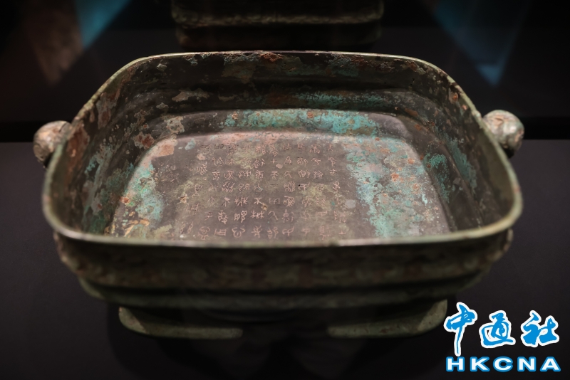 7月4日,香港城市大學般哥展覽館推出“盛世聚首 天寶芳華:圓明園獸首暨文物展”,向公眾免費展出圓明園海晏堂中虎、豬、牛、猴四尊獸首銅像原物。除圓明園獸首外,包括國家一級文物“遂公盨”在內的一批早期中國青銅禮器等珍寶也於該展覽同期展出。圖為“遂公盨”。(香港中通社記者 謝光磊 攝) 香港中通社圖片