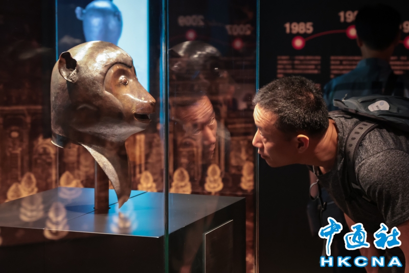 7月4日,香港城市大學般哥展覽館推出“盛世聚首 天寶芳華:圓明園獸首暨文物展”,向公眾免費展出圓明園海晏堂中虎、豬、牛、猴四尊獸首銅像原物。(香港中通社記者 謝光磊 攝) 香港中通社圖片