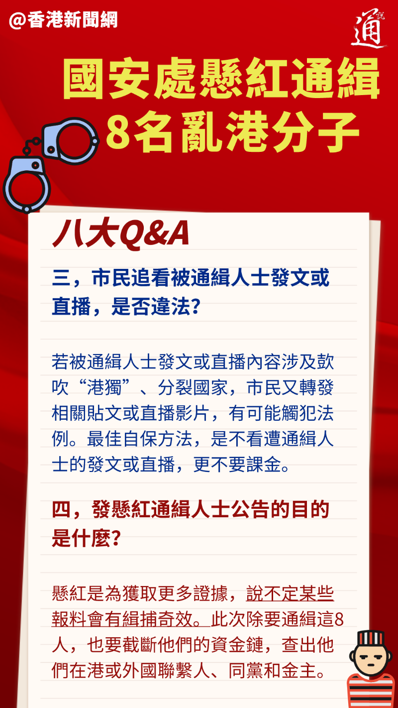國安處懸紅通緝8名亂港分子 一文了解8大Q&A!