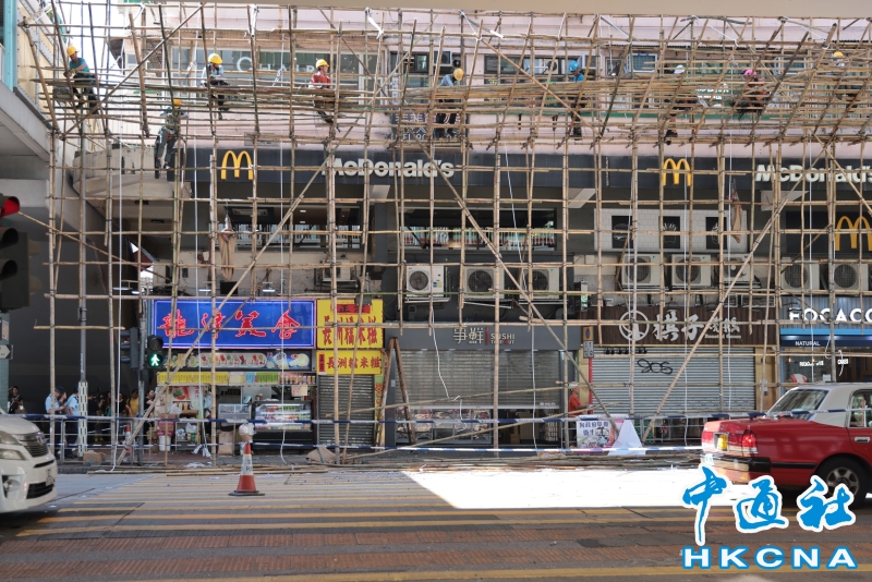 旺角寶安大廈4日內兩度石屎剝落 搭棚工人緊急清拆分享到: