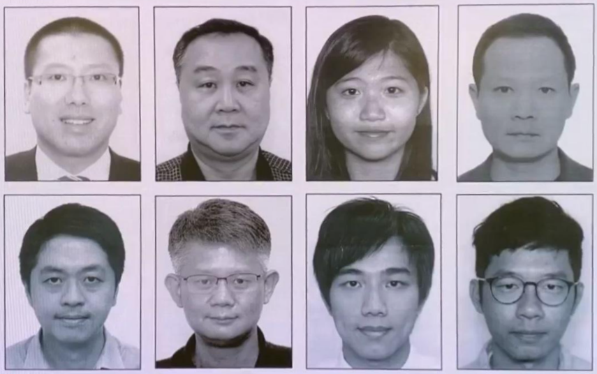 8名被通緝人士。警方圖片 據報,被捕4名男子,年齡介乎26歲至28歲,均為前“香港眾志”骨幹成員,當中包括林朗彥、李啟靖等。有人透過一家顧問有限公司於幕後營運反政府“懲罰mee”的社交平台及手機應用程式,並租用葵涌永建路一工廈單位作辦公室。期間多次透過相關社交平台持續發布具有煽動意圖的訊息,並售賣煽暴煽“獨”的物品以進行籌款,再將資金支援羅冠聰在海外進行反華活動。