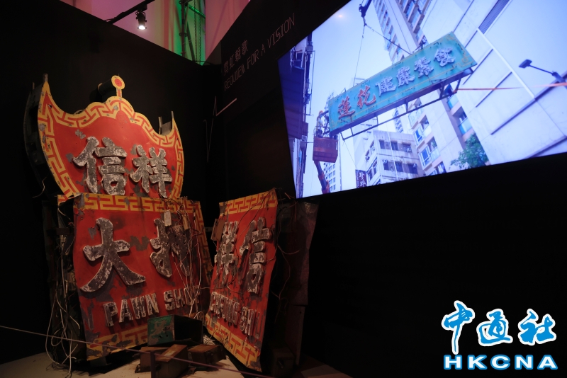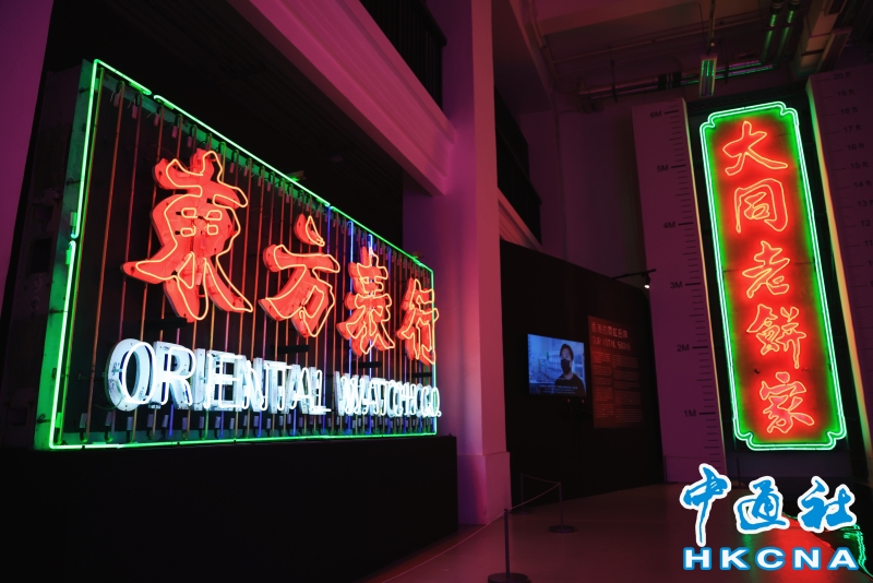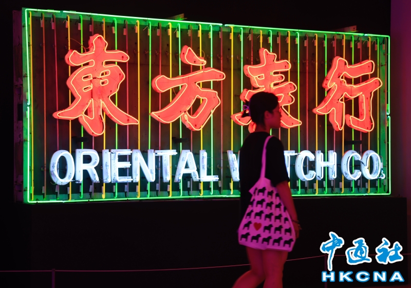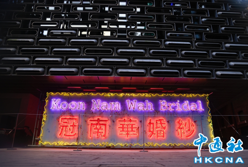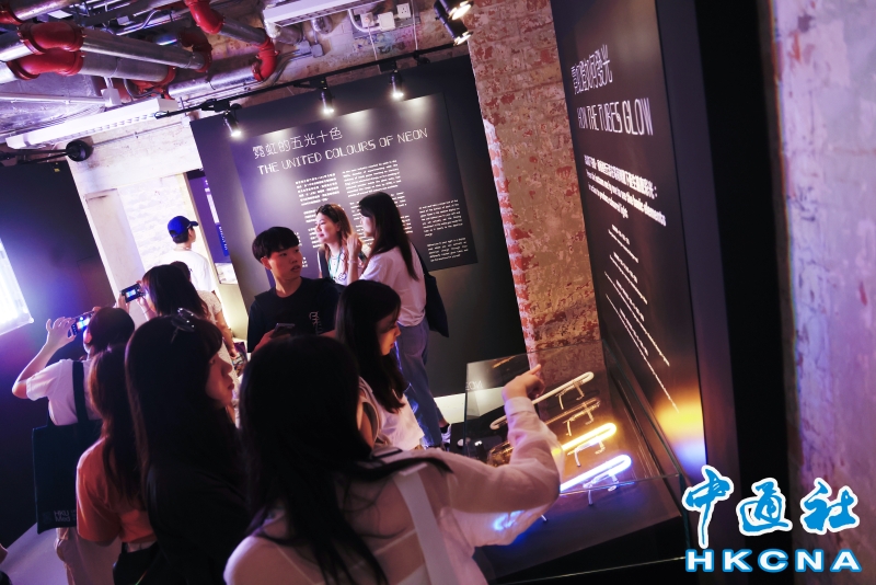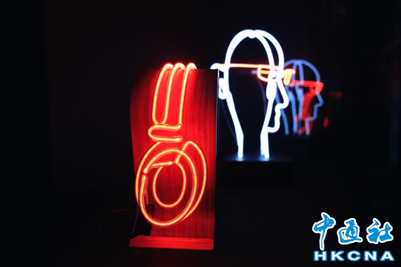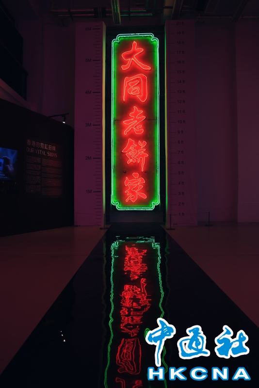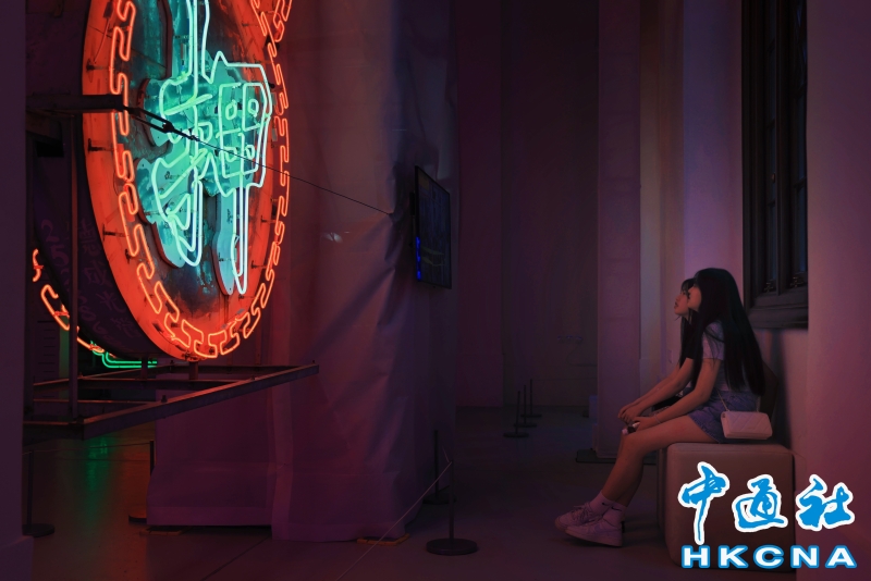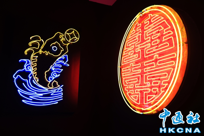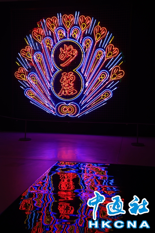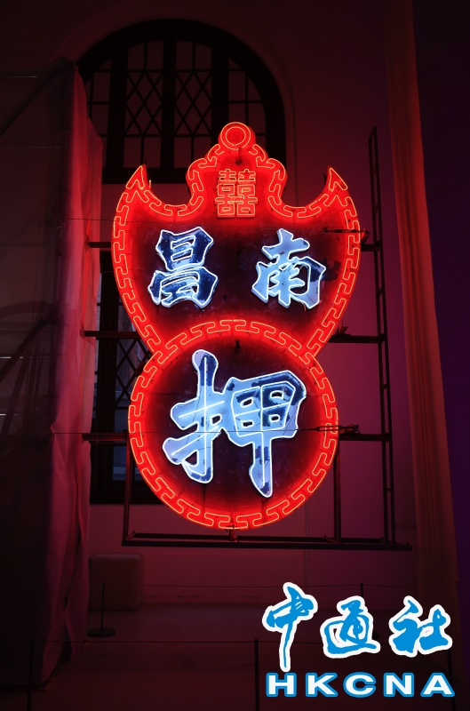 近日,香港中環大館推出《霓續》展覽,展示香港獨特而鮮明的霓虹燈視覺文化形象。觀眾可以欣賞到超過20個霓虹燈招牌,感受其重新綻放出的絢麗光芒;當中不少霓虹招牌更是由霓虹交滙團隊保育下來、重新安裝後首次向公眾展示。(香港中通社記者 曹文毓攝) 香港中通社圖片