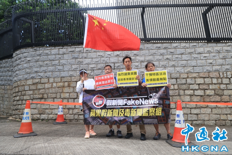 •   7月6日,香港有市民團體到美國駐香港總領事館,抗議美國詆毀香港國安法。(香港中通社記者 許其皓攝) 香港中通社圖片