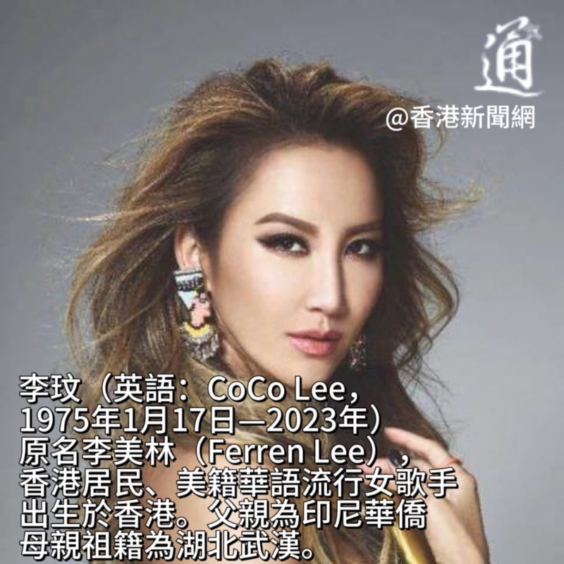 帶著華語音樂走向國際的李玟香港中通社7月6日電(記者 張明臻)7月5日晚,歌星李玟CoCo的姐姐李思林發長文,告知大眾李玟因抑鬱症在家中輕生,經搶救無效,於5日去世,終年48歲。