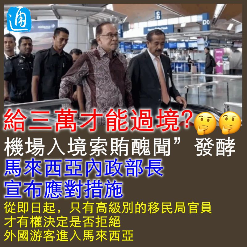 中通社製圖 據新加坡《海峽時報》報道,塞夫丁當天在新聞發布會上向記者表示,高級官員指的是“KP41及以上級別”的官員。這意味著只有“KP41及以上級別”的移民局官員才有權對外國遊客做出“禁止入境”的決定。 塞夫丁稱,翻譯人員也將駐紮在所有主要入境點的服務台,以確保遊客和移民官員溝通順暢。除此外,機場將張貼告示,告知遊客在前往過關櫃台時必須出示的文件。 塞夫丁承認,一些移民局官員存在不當行為。但他強調,該部門的大多數公務員盡職盡責,遵守紀律。 馬來西亞旅遊部長張慶信7月1日表示,6月30日接獲馬來西亞駐廣州總領事館人員的電話後,7月1日凌晨趕到吉隆坡國際機場,當時一名中國籍女子因語言不通,被移民局官員召入黑屋問話超過15個小時,索討約1.8萬林吉特“放行費”。他與官員交涉後,這名女遊客獲准入境。 張慶信的舉動受到馬來西亞公務員工會與“巫統”抨擊,但當地旅遊業界感謝張慶信及時挺身維護國家形像。 張慶信隨之揭發稱,馬來西亞移民局和海關存在索賄的腐敗現象,他要求馬來西亞內政部、反貪會以及各有關部門針對移民局官員展開調查。 事件發酵後,馬來西亞反貪會已經展開調查,並記錄了至少14份口供。總理安瓦爾也在7月2日突訪吉隆坡機場了解情況。據稱,馬來西亞反貪會已經確認了涉嫌向事件中的中國公民索賄的“代理人”。(完) 【編輯:汪彥希】