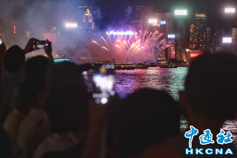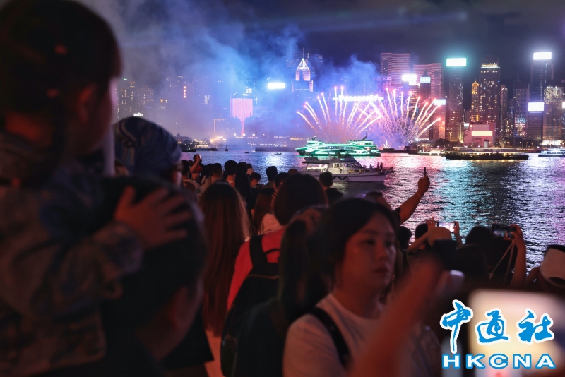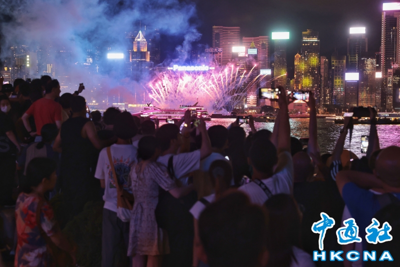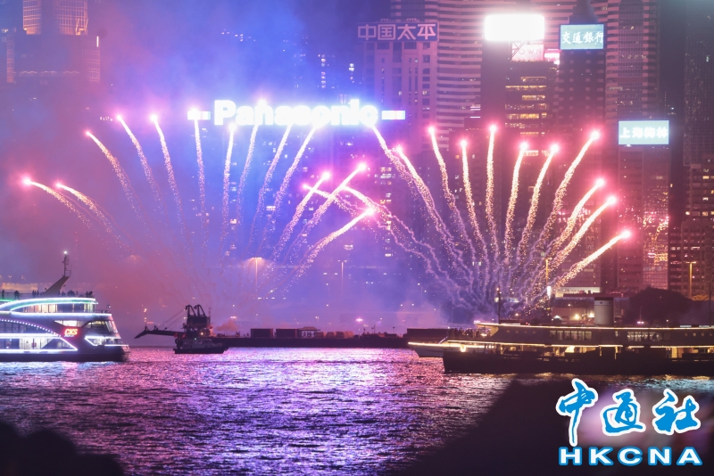 維港上演煙火版“幻彩詠香江”吸引大批遊客觀賞分享到: