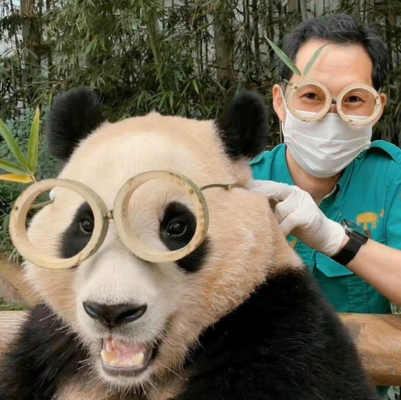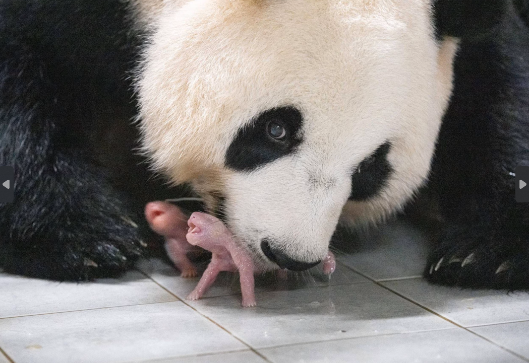 韓國大熊貓和飼養員。 據韓國三星愛寶樂園介紹,大熊貓“愛寶”於7月7日清晨順利產下一對雌性雙胞胎幼崽。這是旅韓大熊貓“愛寶(華妮)”“樂寶(園欣)”繼2020年誕下“福寶”後在韓國第二次產仔。其中,老大4時52分出生,體重180克;老二6時39分出生,體重140克。目前母女平安,兩隻小仔身體狀況良好。(完)