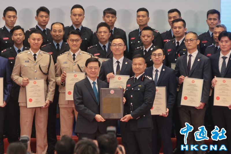 李家超頒授首屆“行政長官表揚榜”獎狀予特區救援隊分享到:
