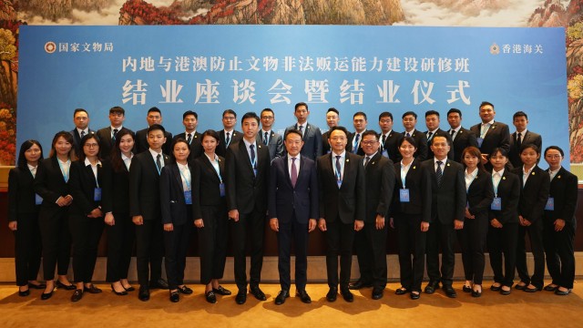 國家文物局圖片 海關副關長(管制及執法)陳子達在結業儀式上指,是次研修班是難能可貴的機會,除了提升學員非法販運文物的偵緝和執法能力外,更促進內地與香港海關的聯繫,為未來打擊相關罪行的合作建立堅實的基礎。 本次研修班共有61位學員,分別來自香港海關及內地與港澳的不同部門。課程涵蓋一系列有關打擊走私文物、內地相關法律和執法策略的課堂。學員亦到訪陝西考古博物館、陝西歷史博物館、陝西省文物保護研究院多個機構交流學習,提升鑑別和處理文物的能力。 國家文物局和香港海關擬於今年簽定合作備忘錄,進一步加強雙方聯手打擊非法販運國家文物的執法工作。 【編輯:汪彥希】