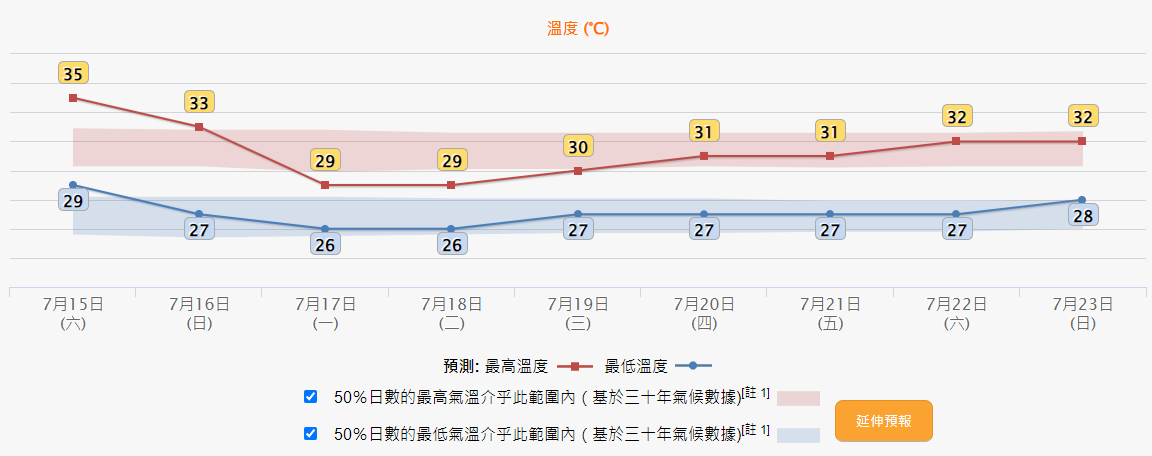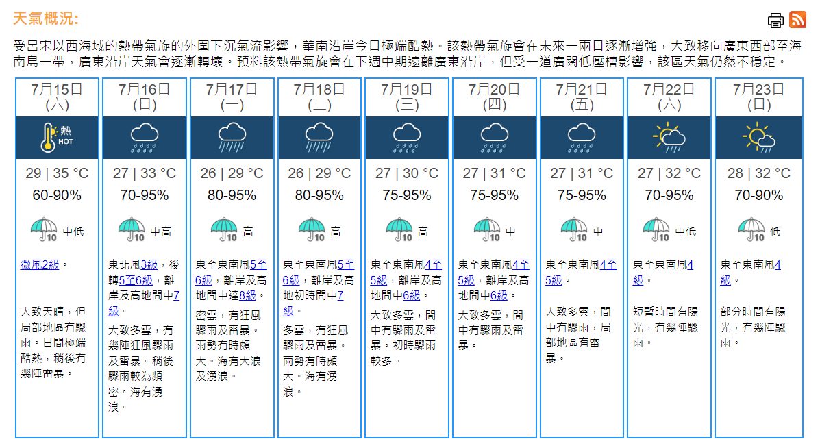 香港九天天氣預報。圖源:香港天文台 【編輯:王軼南】