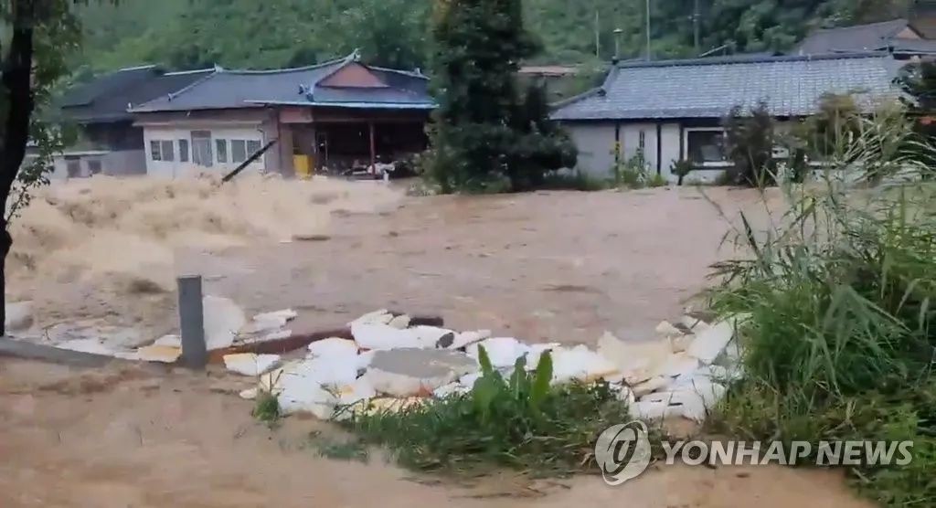 7月15日,慶尚北道奉化郡鳳城面一帶遭受暴雨侵害。圖自韓聯社 因持續強降雨,忠清北道槐山水庫超出警戒線并向四周溢出,忠州市6個邑、面、洞緊急避險轉移6400多人。 由於暴雨,韓國列車也出現大面積晚點或部分停運。韓國鐵道公社(KORAIL)表示,從當天上午9時起,“木槿花”號和“ITX-新村”號等普速列車全部停運,停運將至16日。中央線、中部內陸線的高鐵也宣告停運。雖然京釜高速線、江陵線、全羅線、湖南線等線路仍在運行,預計會出現晚點。