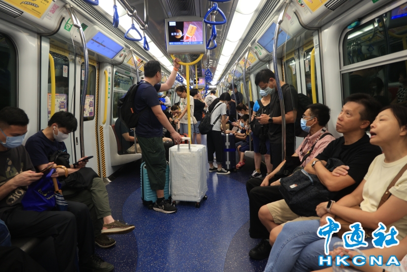 •   7月17日,香港市民乘坐港鐵出行。當日凌晨,受到颱風“泰利”影響,香港天文台發出八號東北烈風或暴風信號,港鐵維持有限度服務。(香港中通社記者 許其皓攝) 香港中通社圖片