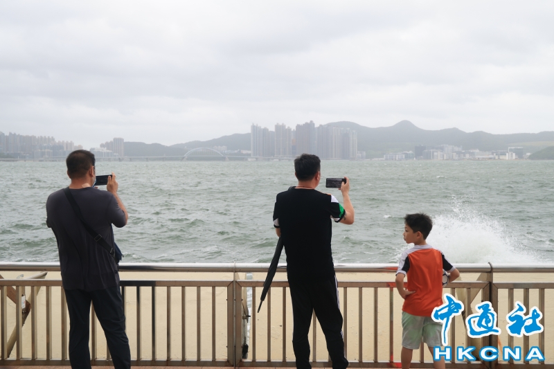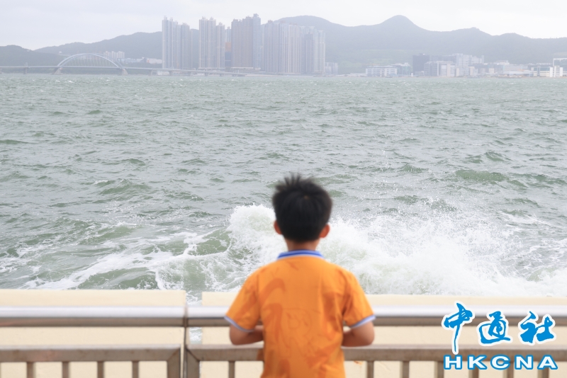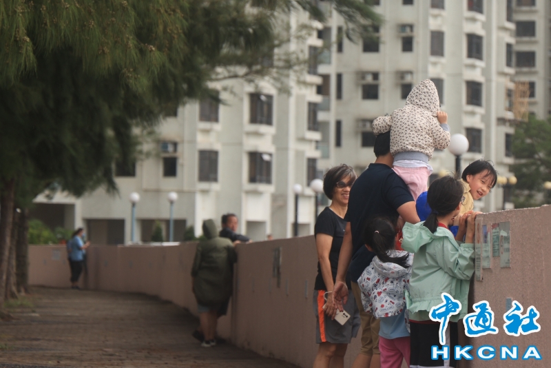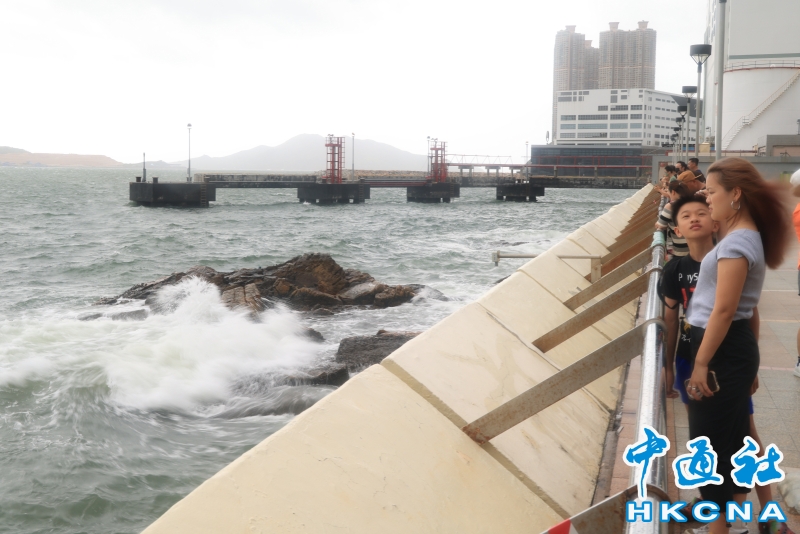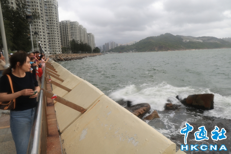 香港今年首掛八號風球 市民杏花邨海濱追風觀浪分享到: