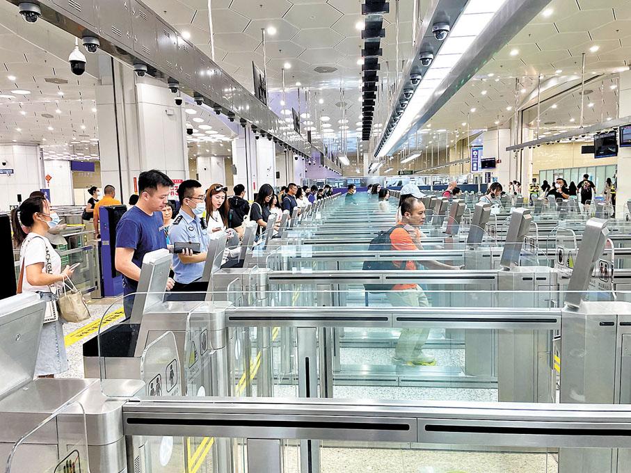 ◆首位旅客經橫琴口岸“常旅客通道”“合作查驗、一次放行”出境。香港文匯報廣東珠海傳真