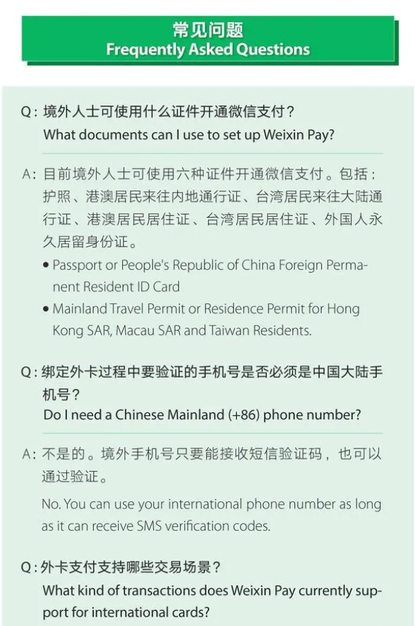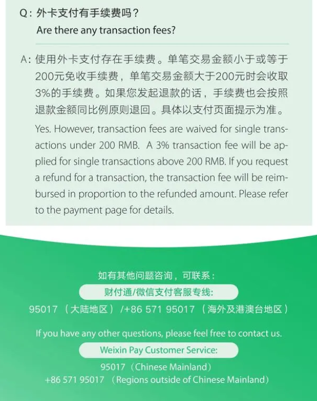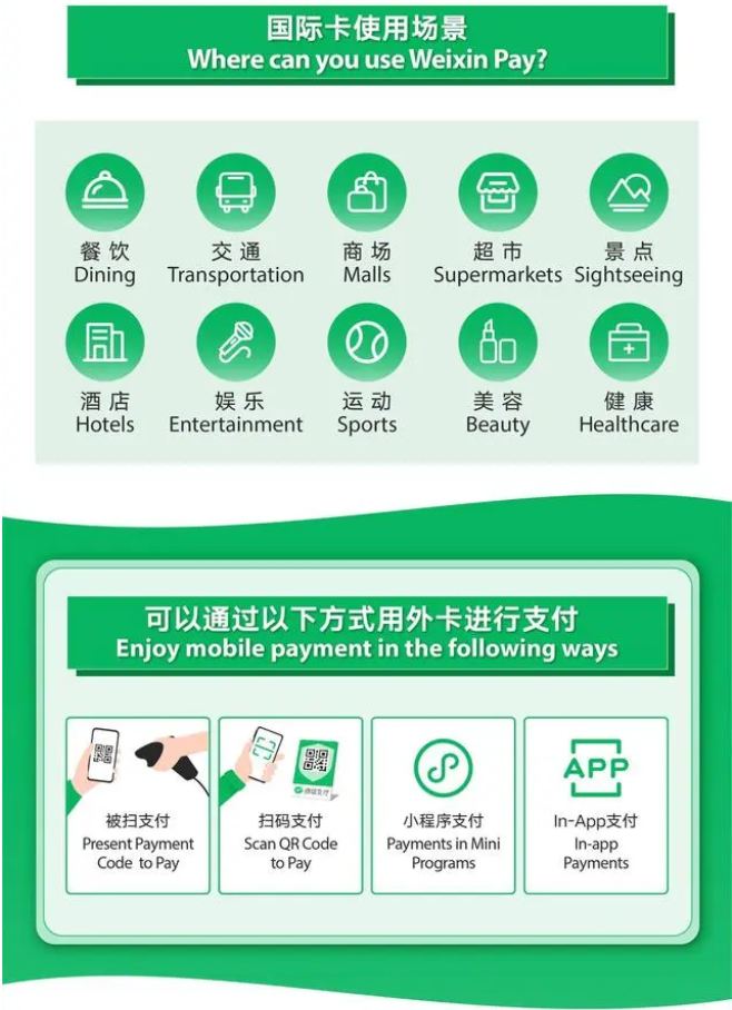 據瞭解,2019年,微信支付即已支持綁定國際信用卡,支持用戶在衣食住行等領域的部分試點商戶消費。 此次開放微信支付商戶網絡之後,入境人士通過護照、港澳居民來往內地通行證(回鄉證)、台灣居民來往大陸通行證(台胞證)、港澳居民居住證、台灣居民居住證、外國人永久居留身份證開通微信支付,綁定國際銀行卡,即可在逾千萬家中小商戶便捷消費。為支持用戶小額高頻的消費需求,對於單筆交易金額人民幣200元及以下的國際卡交易,微信支付承擔國際卡交易相關費用,免收用戶交易手續費(具體以支付頁面提示為準)。 此前,國務院、發改委相繼發佈指導實施意見,提及完善入境游客移動支付解決方案,提高游客消費便利性,明確指出鼓勵境內支付服務機構在依法合規前提下與境外發卡機構合作,為境外游客提供移動支付業務。 今年,成都大運會、杭州亞運會等國際賽事陸續舉辦,入境人員數量持續增長,騰訊開放微信支付商戶網絡,以及此前推出境外本地錢包與境內互聯互通等舉措,將極大提升入境用戶的移動支付體驗。 以前使用微信和支付寶付款功能時需要有國內的銀行賬戶,很多旅居國外的海外華人,常常因為不能綁定外國信用卡,享受不到國內移動支付的種種便利。 新政策下來後既促進了國內旅游觀光業收入,又更加方便海外華人回國使用了! (完)