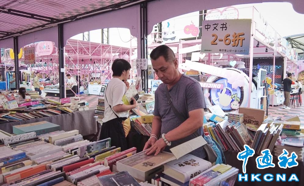 •   京西某生活市集的圖書攤位上,顧客在選購圖書。 香港中通社圖片