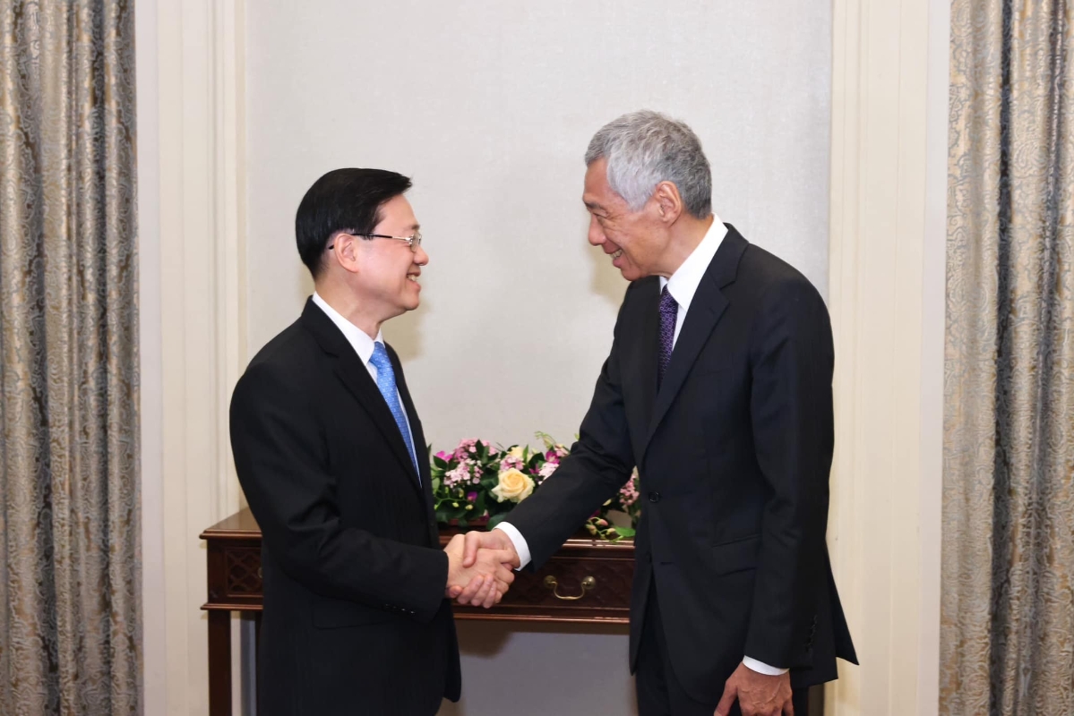 香港新聞網7月24日電 香港特區行政長官李家超率領的香港特區代表團繼續訪問新加坡的行程。李家超今日(24日)與新加坡總理李顯龍會面,他事後在社交平台發文,指重視與新加坡的長期密切關係,並感謝新加坡支持中國香港早日加入區域全面經濟夥伴協定(RCEP),深信兩地的合作會繼續穩步發展。 兩人在會前握手問好,李家超向李顯龍逐一介紹隨團官員。李家超表示,兩人上一次會面是於去年底在泰國曼谷出席亞太經濟合作組織(APEC)會議,他又感謝李顯龍邀請他到訪新加坡。李家超說,此行率領5名港府主要官員,以及約30名來自各界的成功人士來訪,目的是讓雙方建立友誼、增進對彼此認識,以及加強合作等。
