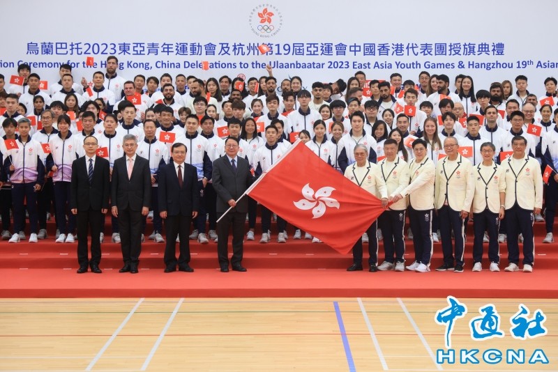 杭州2023亞運會中國香港代表團授旗典禮。(香港中通社記者 許其皓 攝) 當天舉行的授旗典禮,包括將於8月下旬舉行的烏蘭巴托2023東亞青年運動會。香港特區署理行政長官陳國基,將香港特區區旗分別授予東亞青年運動會中國香港代表團團長黃寶基,及亞運會中國香港代表團團長霍啟剛和三位副團長。 陳國基致辭表示,香港龐大代表團除了有經驗豐富的精英運動員,亦有不少新秀,反映香港不同體育項目已開始建立有系統的梯隊培訓。香港運動員除了可以與亞洲頂尖運動員切磋較量之外,亦能加深對國家最新發展的認識,別具意義。 港協暨奧委會會長霍震霆致辭表示,亞運會是亞洲規模最大的大型綜合運動會,今屆是國家第三次主辦亞運,在國家積極籌備和支持下,相信杭州亞運定在香港再次掀起全民支持運動員的熱潮,實行“堅並肩 撐港隊”。 霍啟剛接受中通社記者採訪指出,香港史無前例派出最大隊伍,運動員、教練、官員共逾千人,以人數取勝,底氣更重。相信很多運動員會提前到杭州或內地集訓備戰,香港與內地一直合作無間,香港運動員會得到非常好的環境準備。他指,從奧運會到現在,香港的新老運動員在各項國際比賽中都有進步,頻頻拿獎,在杭州,運動員絕對會拿出最好狀態,自己有壓力也有信心。 龍舟選手鄧淏聰對記者表示,儘管項目相對來説較冷門,但隊員會努力爭取好成績。武術選手許得恩指,雖然以往也有出去參賽的經歷,但第一次這樣大的隊伍一起,很開心,本次目標就是完成表演,贏得大家的掌聲。 電競是首次亮相亞運會的項目,香港代表隊亦派出選手參賽。教練蔡兆倫對比賽很有信心,指他們的成績在東亞地區算中上水平,很有信心拿獎牌,亦很高興電競項目可以登上亞運舞台。(完) 【編輯:王瑶】
