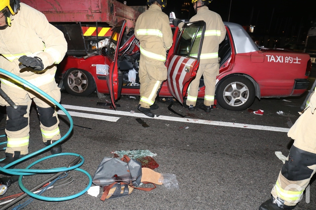 圖源:香港01 當晚8時許,一輛的士在銅鑼灣駛至世貿中心對開時,懷疑來不及停車,直衝前方吊臂車車底,車頭插入吊臂車下方。 警方及消防接報到場,將的士內傷者救出。現場消息指的士司機當場傷重不治,另有一男兩女、一名女童昏迷送院治理。 警方事後封鎖現場調查意外原因,現場交通受阻,遺有一堆雜物包括一隻鞋,玻璃碎散滿一地,的士擋風玻璃遺下血跡。(完) 【編輯:王瑶】